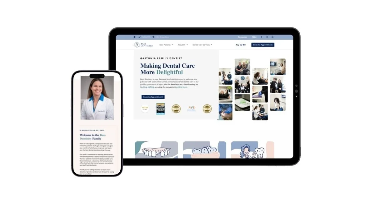 Bass Dentistry is a Gastonia-based family and cosmetic dental practice that has earned the trust of its community year after year, recognized as a Best of Gaston winner multiple times over. When I stepped into my web design role, I helped bring the existing vision to life and finalize the look and feel of the site. The work didn't stop there. As the practice has grown and evolved, so has its audience, and I'm currently in the middle of a thoughtful rebrand, gradually shifting the design to better reflect and speak to the new patients Bass Dentistry is welcoming. It's the kind of ongoing partnership that goes beyond a one-time project, staying close to the brand as it changes and making sure the design always shows up for the people it's meant to serve.