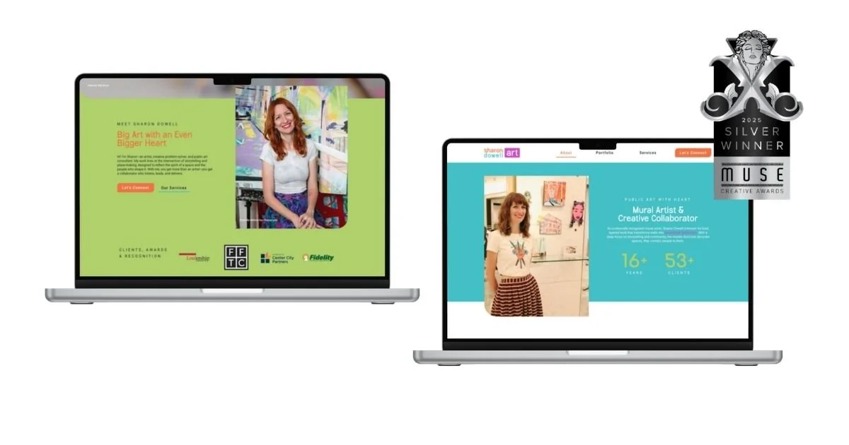 This is one of my most personal projects. Sharon is a large-scale public artist whose work transforms spaces and communities, and she needed a website that could hold all of that. I led the design from start to finish, updated her branding with a more balanced and intentional color palette, and built a site that brings her art, her story, and her personality to the forefront. Sharon didn't just need a portfolio. She needed someone to speak for her when she couldn't be in the room. That's what I set out to do.